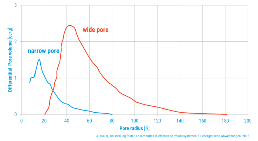Die Porengröße beeinflusst zwei physikalische Mechanismen gleichzeitig: die spezifische Oberfläche und den Kapillarkondensationsdruck.
